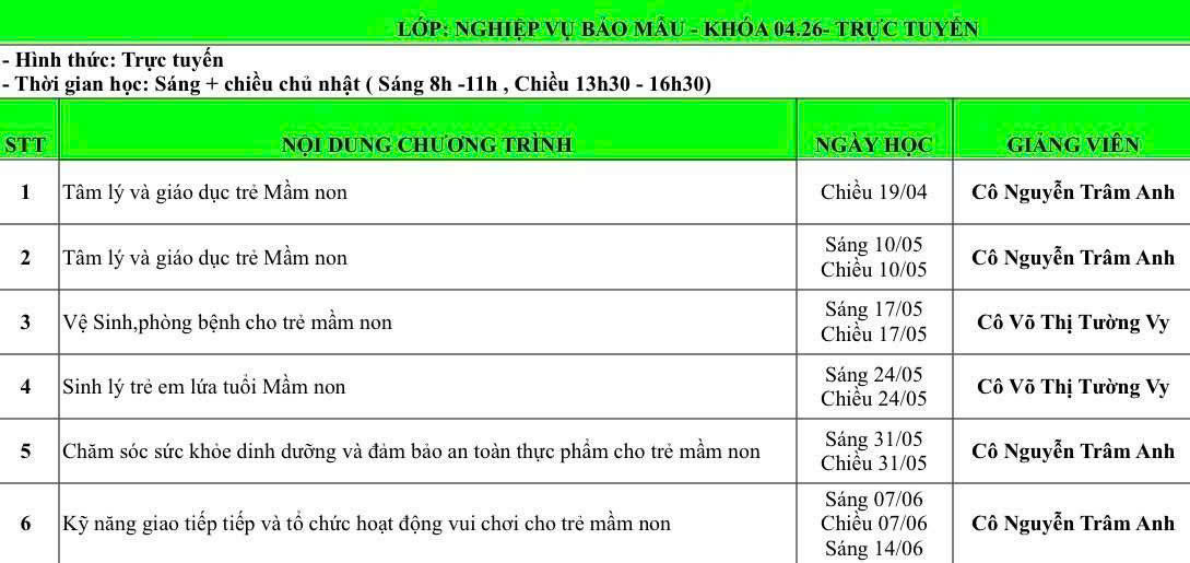 - Lớp NVSP dành cho Học viên dạy hoặc mở trung tâm riêng