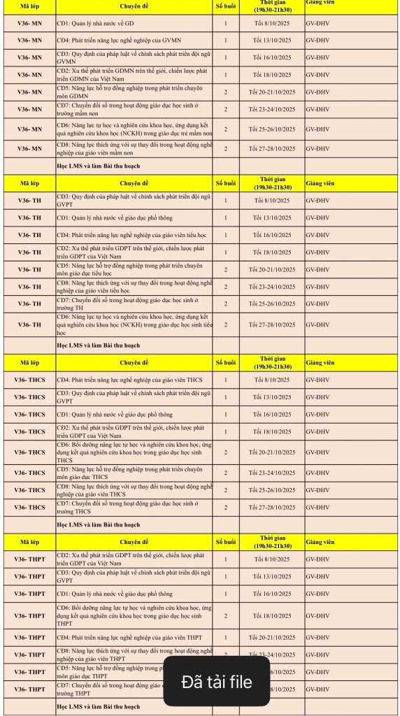 🎓 Thông tin khóa học CDNN Giáo viên V36