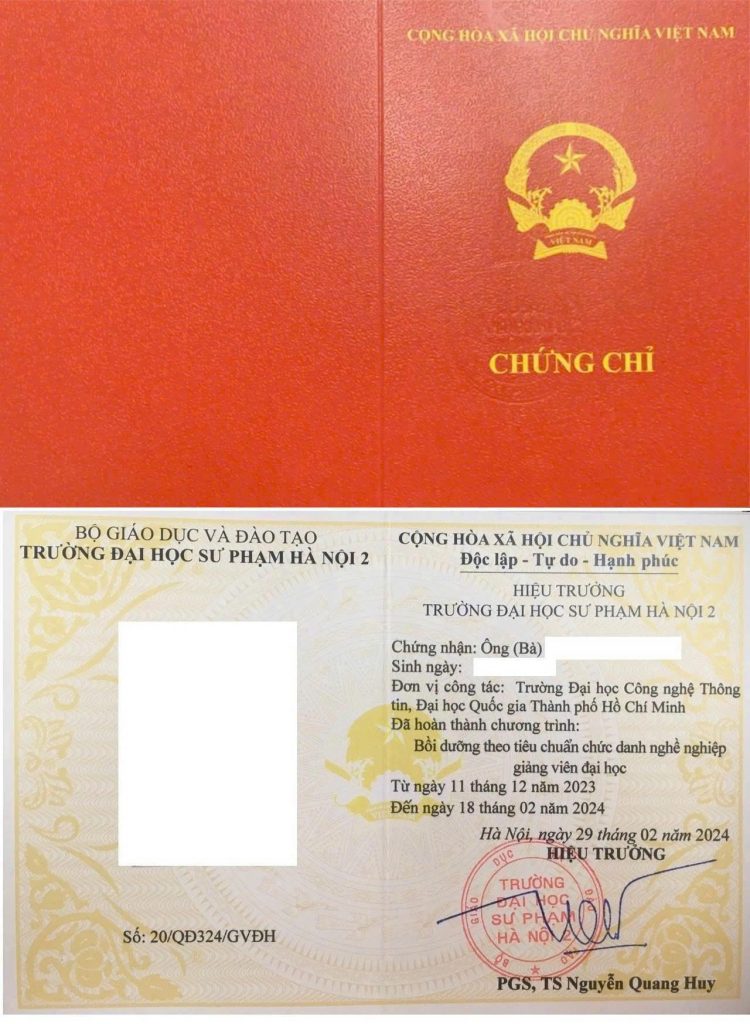 Kết thúc khóa bồi dưỡng nghiệp vụ CCD giảng viên ĐH Khóa 10.25, học viên đủ điều kiện sẽ được cấp Chứng chỉ CCD giảng viên đại học do Trường Đại học Sư phạm Hà Nội 2 cấp.
