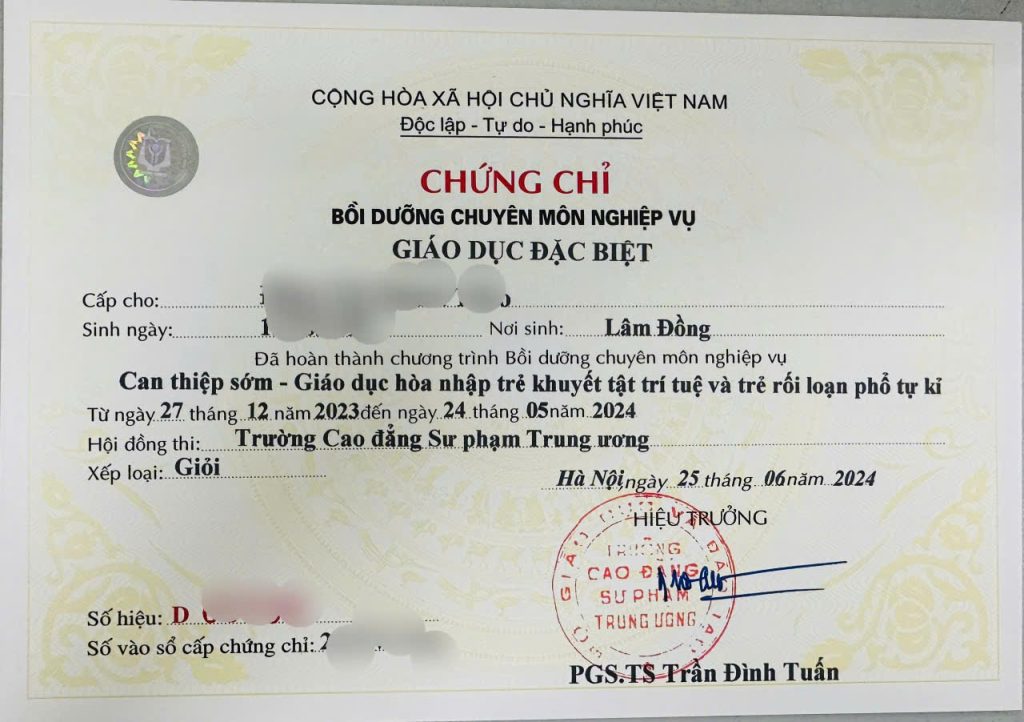 Thông Tin Khóa Học Giáo Dục Đặc Biệt (Can Thiệp Sớm)
