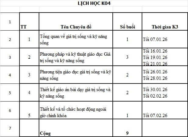 📌 Nhanh tay đăng ký Khóa Bồi dưỡng Nghiệp vụ Giáo dục Giá trị sống và Kỹ năng sống (KNS) K04 để nâng cao năng lực chuyên môn, bổ sung chứng chỉ cần thiết và đồng hành cùng xu hướng giáo dục toàn diện hiện nay.