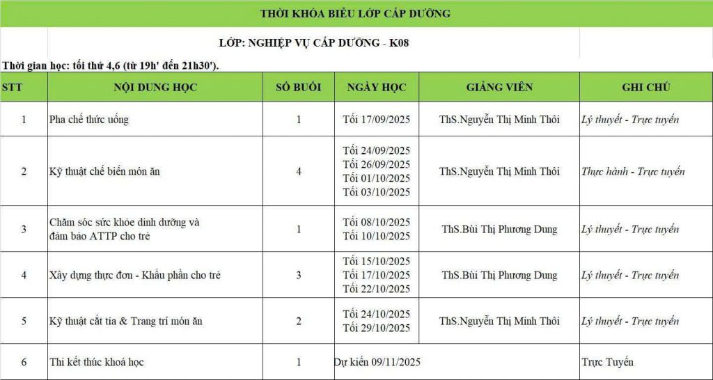 KHÓA HỌC NGHIỆP VỤ CẤP DƯỠNG – ĐÀO TẠO CHUYÊN NGHIỆP, HỌC PHÍ ƯU ĐÃI