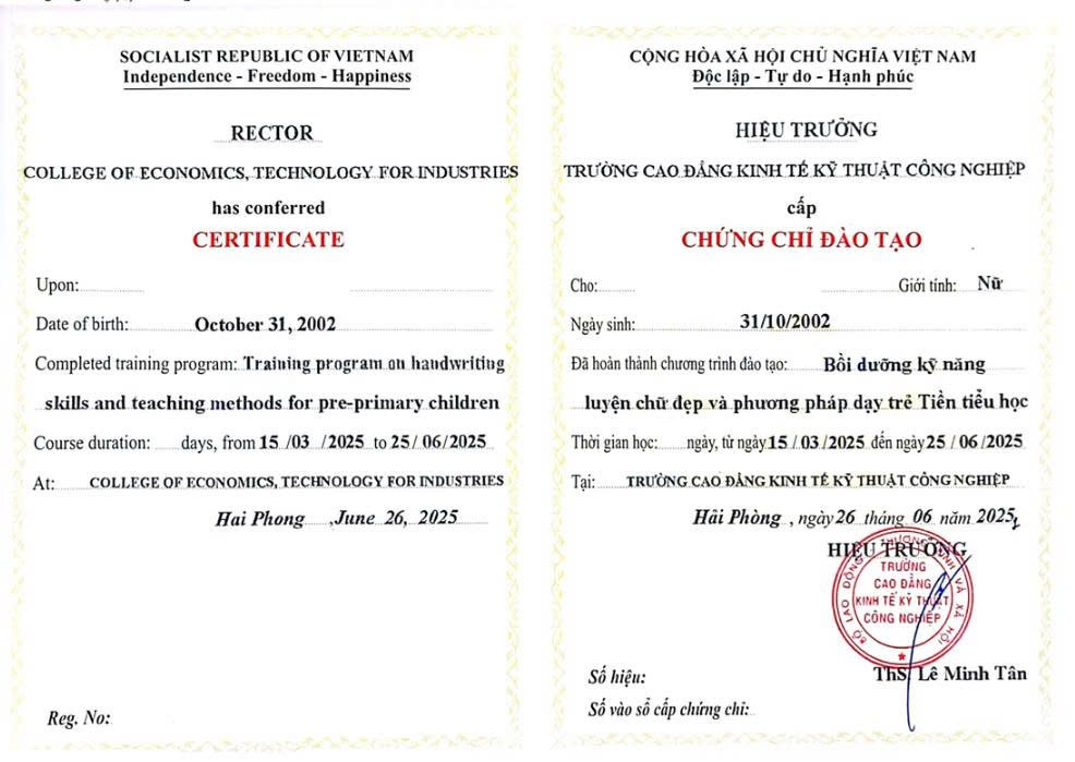 ✅ Chứng chỉ được cấp bởi Trường Cao đẳng Kinh tế Kỹ thuật Công nghiệp.