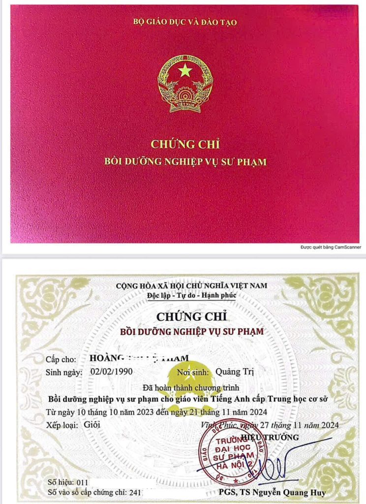 CHỨNG CHỈ NGHIỆP VỤ SƯ PHẠM TIẾNG ANH – ĐẠI HỌC SƯ PHẠM HÀ NỘI 2